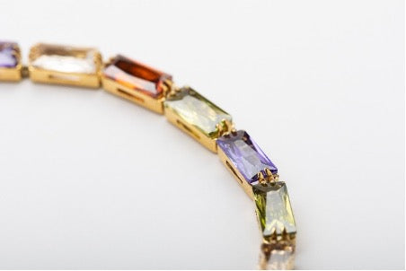 Tauche ein in die funkelnde Welt des Luni Spectrum Armbands – ein Schmuckstück, das so vielseitig ist wie du selbst. Jedes einzelne Strasssteinchen erzählt eine eigene Geschichte in leuchtenden Regenbogenfarben – von mutigem Rot bis zu beruhigendem Blau.